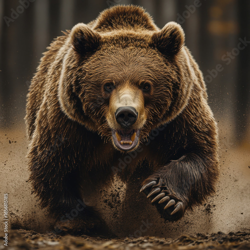 Obraz premium Brown bear running through mud.