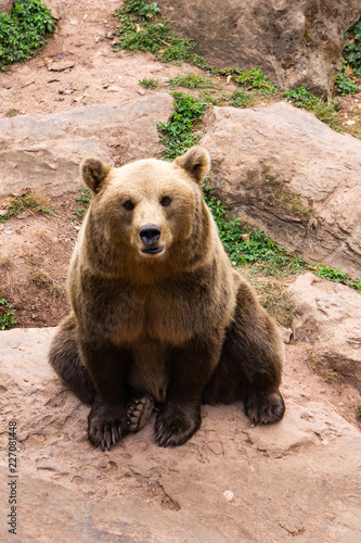 Fototapeta premium brown bear sitting on a stone in wildlife park
