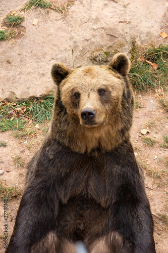 Fototapeta premium brown bear sitting on a stone in wildlife park