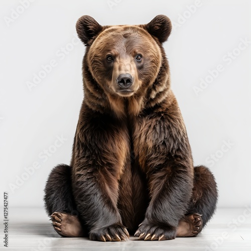Obraz premium Brown Bear Sitting on White Background