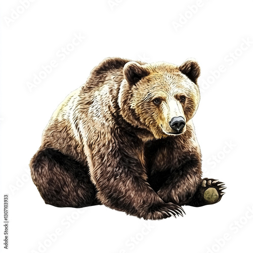© Thanthara, Obraz premium brown bear sitting on white background, looking calm