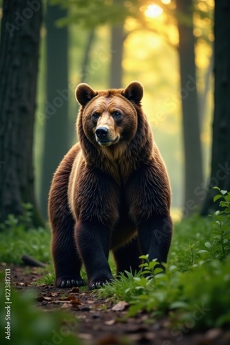 © Prayoon, Obraz premium Brown Bear standing alone in the forest, landscape, northern lands
