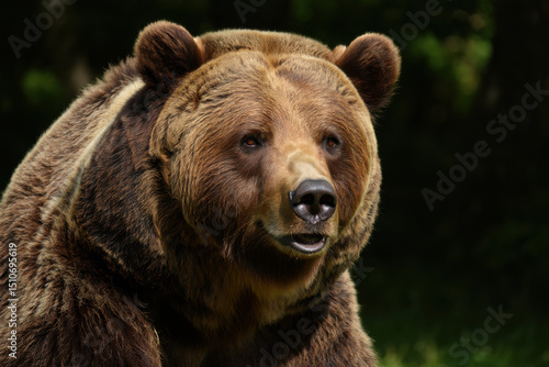 © Dejana, Fototapeta premium Brown bear standing and looking towards the horizon in forest
