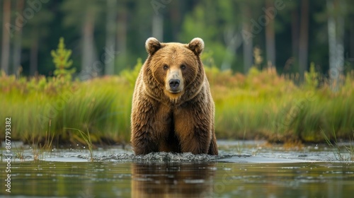 Obraz premium Brown Bear Standing in a Marsh