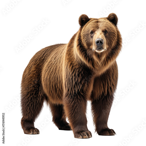 © Jaroot, Obraz premium Brown bear stands tall against a dark backdrop with detailed fur coat