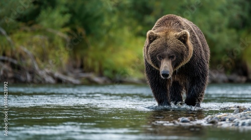Obraz premium Brown Bear Strolling Through River, Alaska