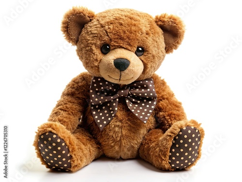 © Kaveepat, Fototapeta premium Brown Bear Toy, Sitting, White Background, Copy Space