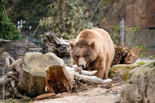 © Fernando, Obraz premium Brown bear (Ursus arctos) in captivity walking through its burrow