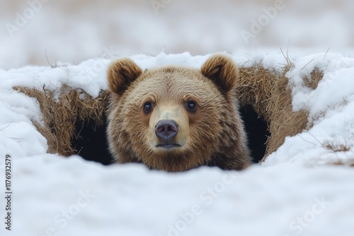 © Bojan, Obraz premium Brown bear waking up from its den in the snowy wilderness during early spring