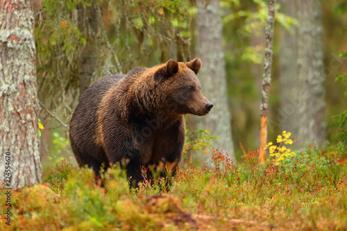 © Antonioguillem, Fototapeta premium Brown bear walking in a colorful forest