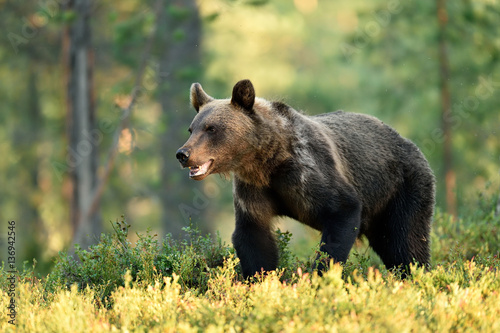 © Erik Mandre, Fototapeta premium Brown bear walking in a forest at summer. Predator. Grizzly.