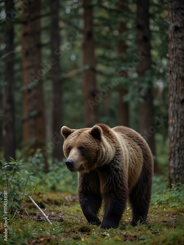 Obraz premium Brown bear wandering through a forest.