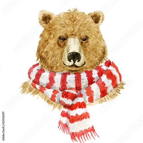 Fototapeta premium Brown bear wearing a scarf