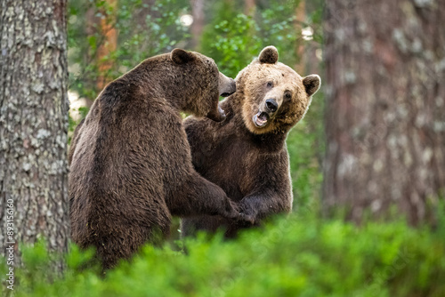 © Erik Mandre, Obraz premium Brown bears fighting in the forest