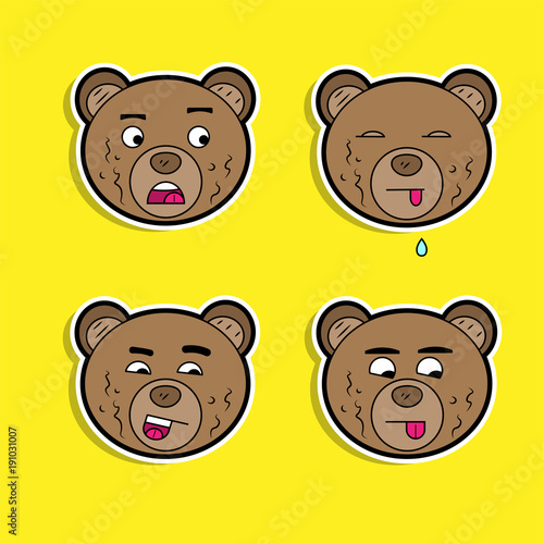 Obraz premium Brown bears with different facial expressions color sticker set