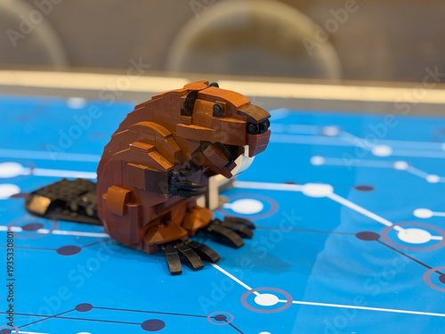 © Marina Chernivetskay, Fototapeta premium Brown beaver brick model on blue surface