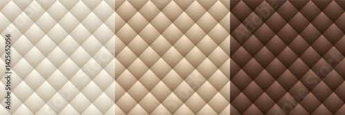 Naklejka premium Brown, beige and creamy colored seamless pattern with rhombus quilted leather...