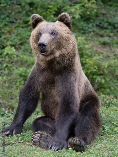 © fotomaster, Fototapeta premium brown big bear sits on the background of the forest