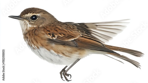 © AUAChanel, Fototapeta premium Brown Bird with Detailed Plumage in Mid-Flight Against White Background