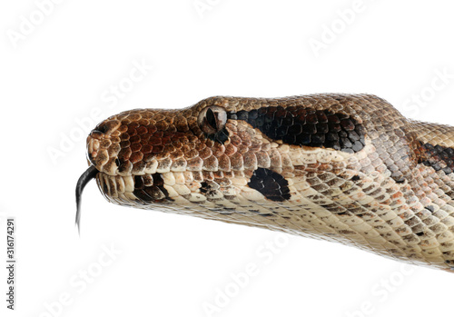 © New Africa, Fototapeta premium Brown boa constrictor on white background, closeup
