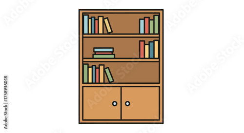 Fototapeta premium Brown Bookcase with Books on Shelves and Cabinet Doors.