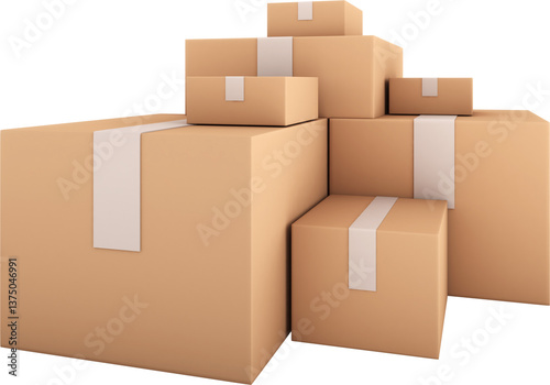 © oselote, Obraz premium Brown box with goods on white background. Shipping and parcel delivery business. ,3d rendering