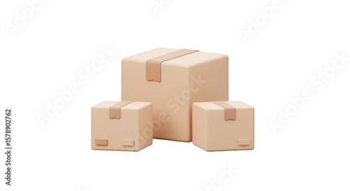 © Lucia, Obraz premium Brown Boxes 3D Rendering Package Parcels Shipping Isolated Transparent