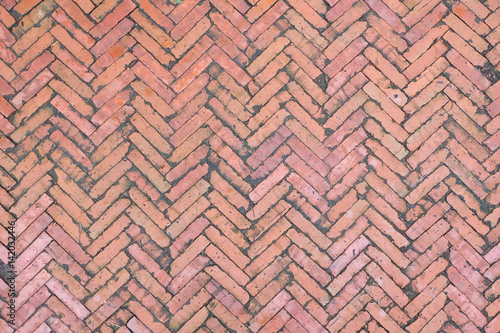 © worldwide_stock, Naklejka premium Brown bricks pavement pattern for background, natural texture