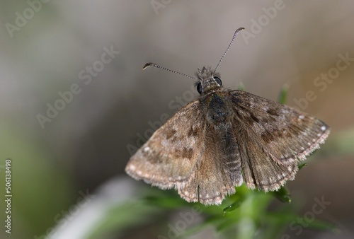 © venars.original, Fototapeta premium Brown butterfly on spring meadow background