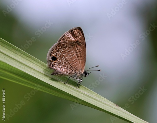 © Wirestock, Fototapeta premium Brown butterfly perched atop a cluster of vibrant green foliage