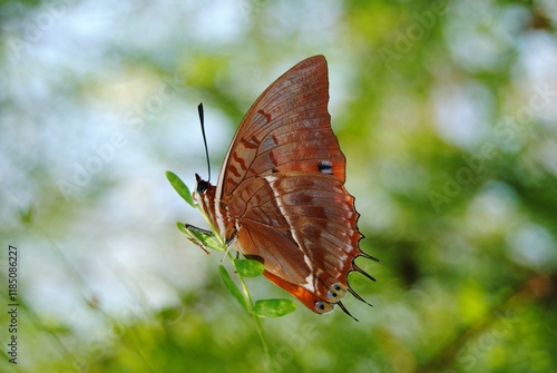 Fototapeta premium brown butterfly sitting on leaf