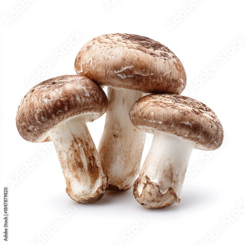 © Napaporn, Fototapeta premium Brown capped mushroom trio on white background