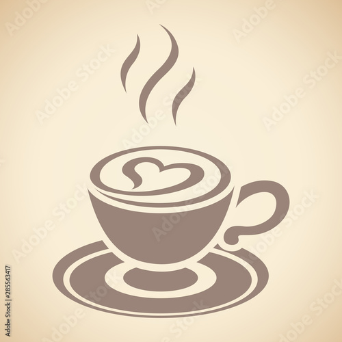 © cidepix, Obraz premium Brown Cappuccino Icon with Heart isolated on a Beige Background Vector Illustration