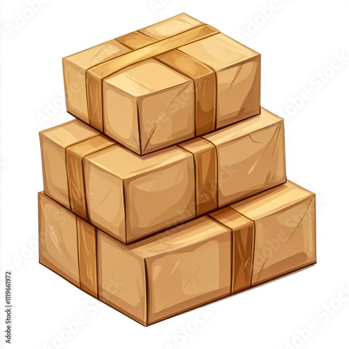 © Nishat, Obraz premium Brown cardboard boxes stacked, isolated on a white background.