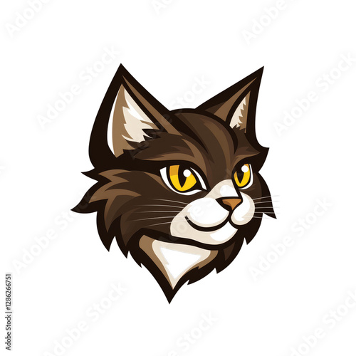 © Atmospheric stock, Obraz premium Brown cartoon cat with yellow eyes and pointed ears