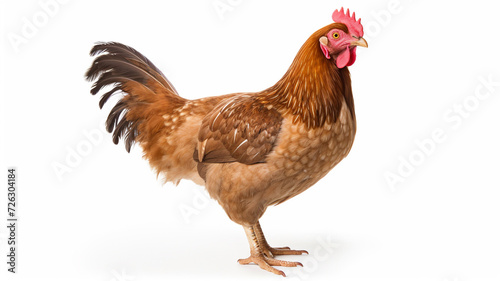 © Yuwarin, Fototapeta premium brown chicken hen standing isolated white background