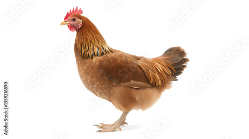© Qrryferry, Fototapeta premium brown chicken hen standing isolated white background use for far