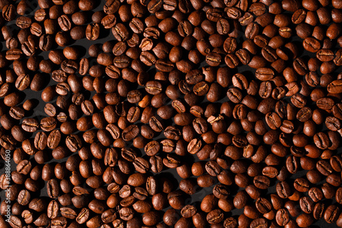 Fototapeta premium brown coffee beans, background texture, close-up. Top view.