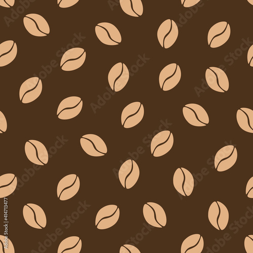 Obraz premium Brown coffee beans. Coffe seamless vector pattern. Suitable for wrapping paper, fabric printing, coffee shop, restaurant, cafe