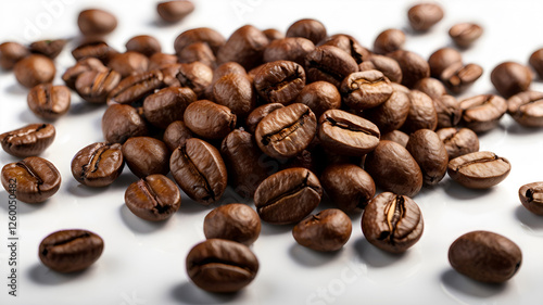 © Ramani, Naklejka premium brown coffee beans on white background