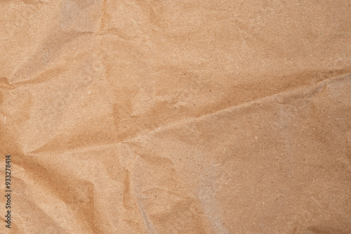 Fototapeta premium Brown craft baking paper sheet top view background, parchment for baking culinary, piece of wrinkled or crumpled paper texture