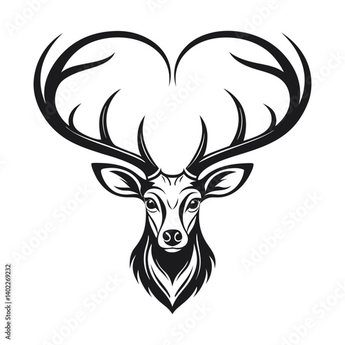 Fototapeta premium Brown deer head silhouette vector illustration shows a wild mammal with antlers