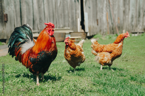 © ShevarevAlex, Fototapeta premium Brown domestic chicken in the summer outdoors close-up