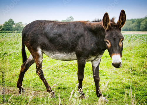 Fototapeta premium Brown donkey on meadow in France