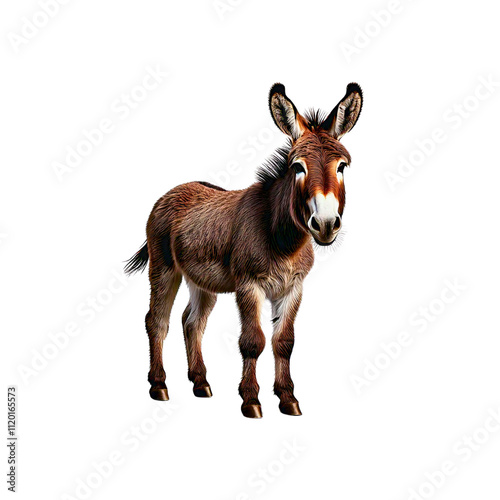 Fototapeta premium Brown donkey standing on a transparent background in a playful pose