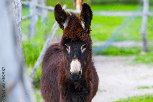 Fototapeta premium Brown Donkeys Farm Animal close up, cute funny pets background