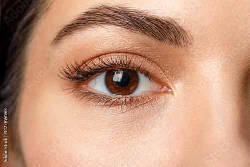 © Aleksandr Rybalko, Fototapeta premium Brown eye of a woman taken in close-up.