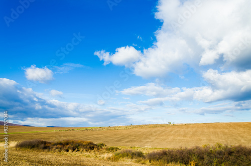 © klagyivik, Fototapeta premium brown field and blue sky