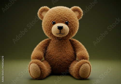 Fototapeta premium Brown Fluffy Teddy Bear Sitting on Olive Green Background