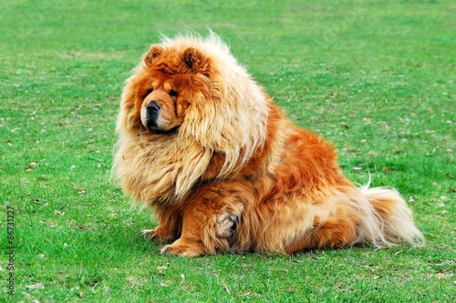 © bokstaz, Fototapeta premium Brown friendly chow-chow dog in the city